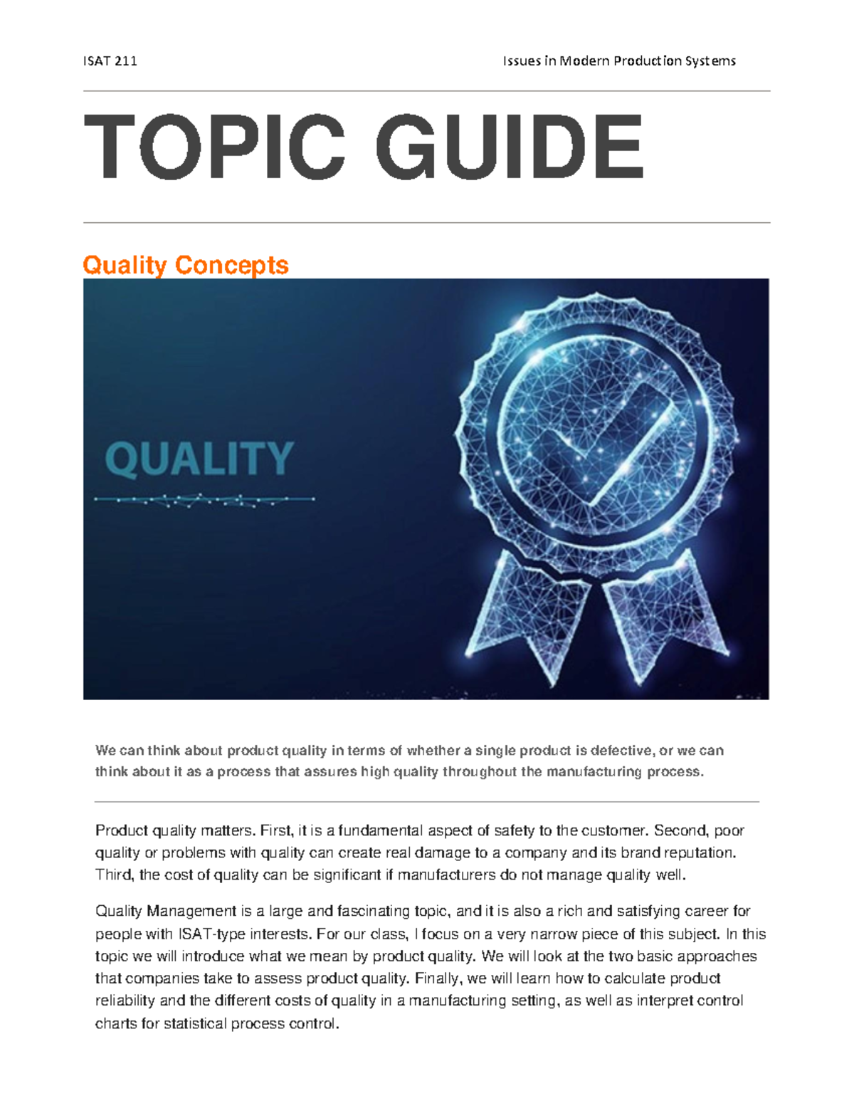 ISAT 211 Topic Guide: Quality Concepts - Studocu