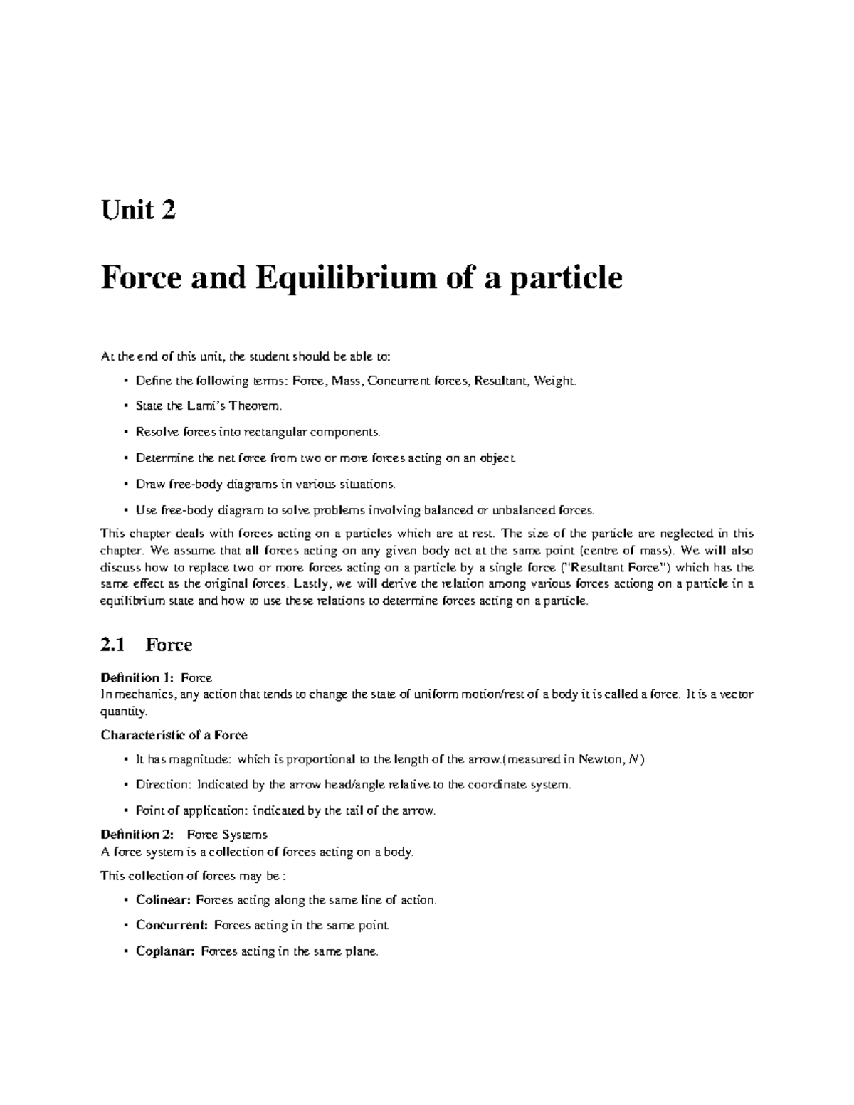 Unit 2: Force and Equilibrium Concepts - Studocu