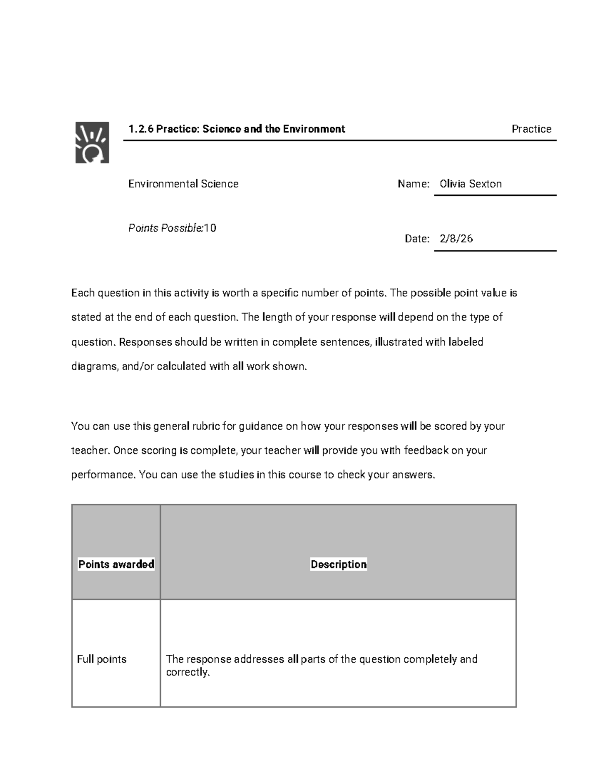 1.2.6 Practice: Environmental Science Concepts and Applications - Studocu