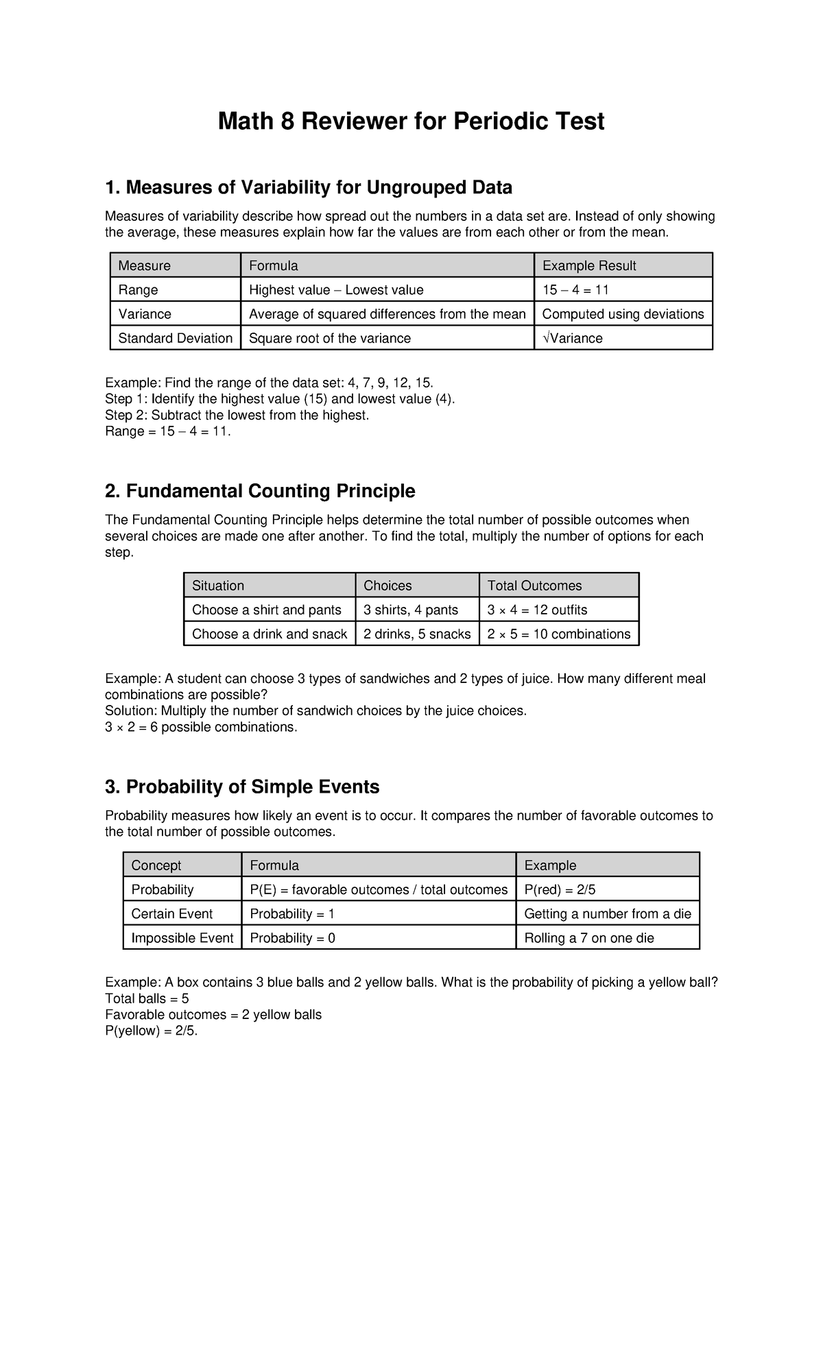 Math 8 Reviewer for Periodic Test 1: Variability & Probability Concepts ...