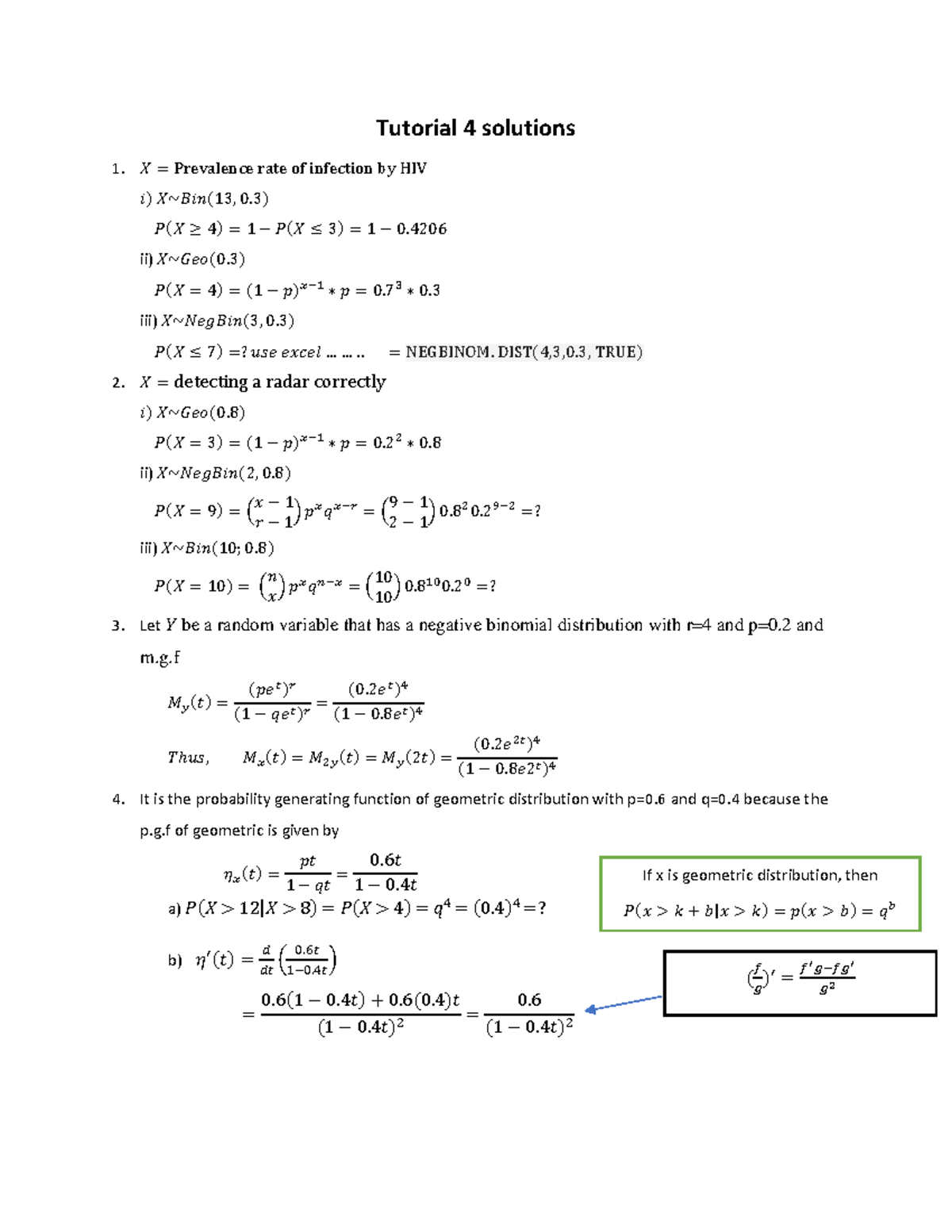 Tutorial 4 Solutions: Probability and Statistics Concepts - Studocu