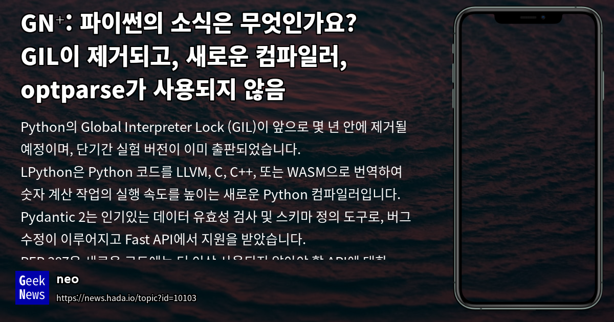 파이썬의 소식은 무엇인가요? GIL이 제거되고, 새로운 컴파일러, optparse가 사용되 | GeekNews