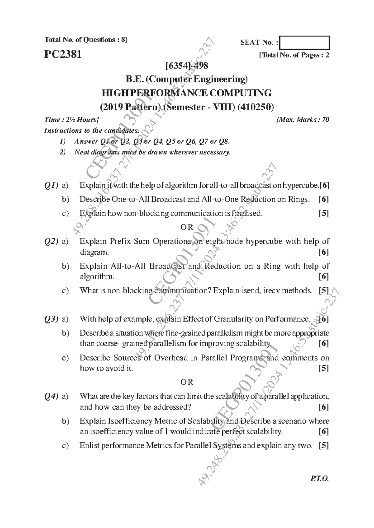 PC2381 High Performance Computing Nov Dec 2024 - PYQ Exam Paper - Studocu