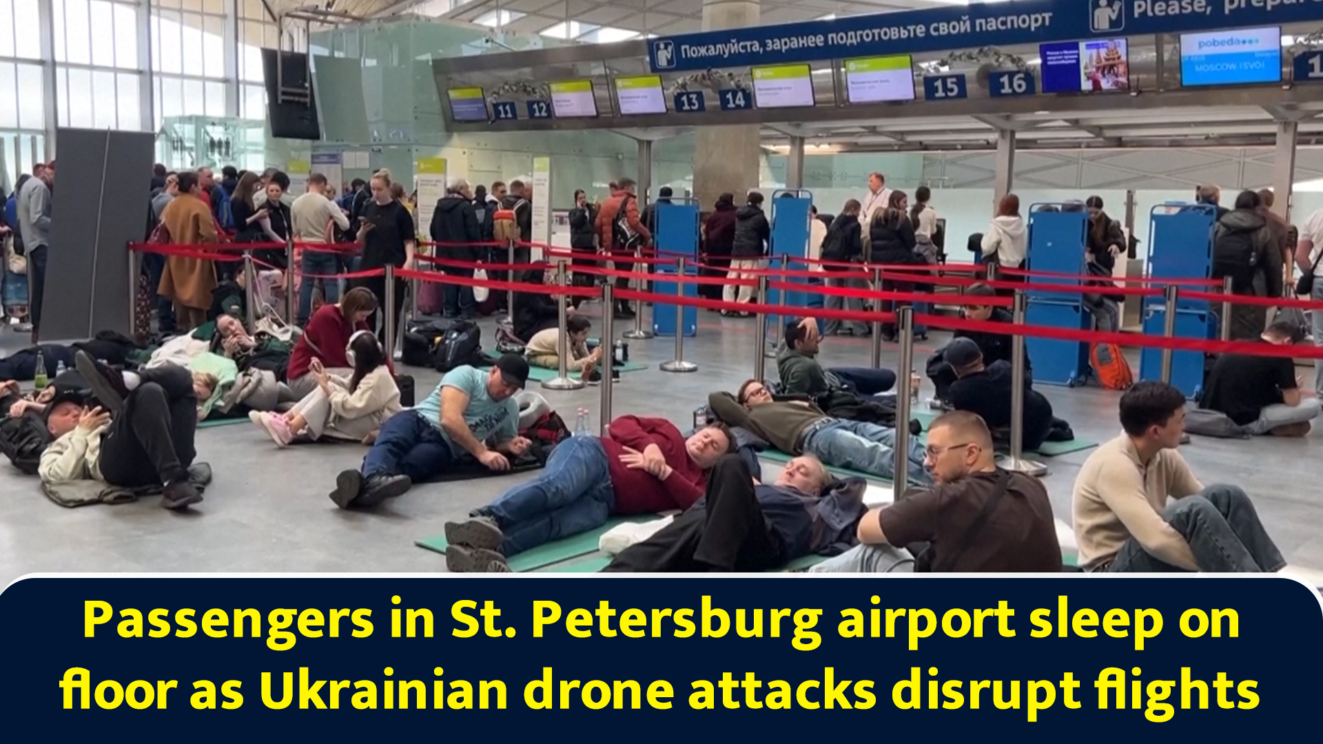 Passengers in St. Petersburg airport sleep on floor as Ukrainian drone ...