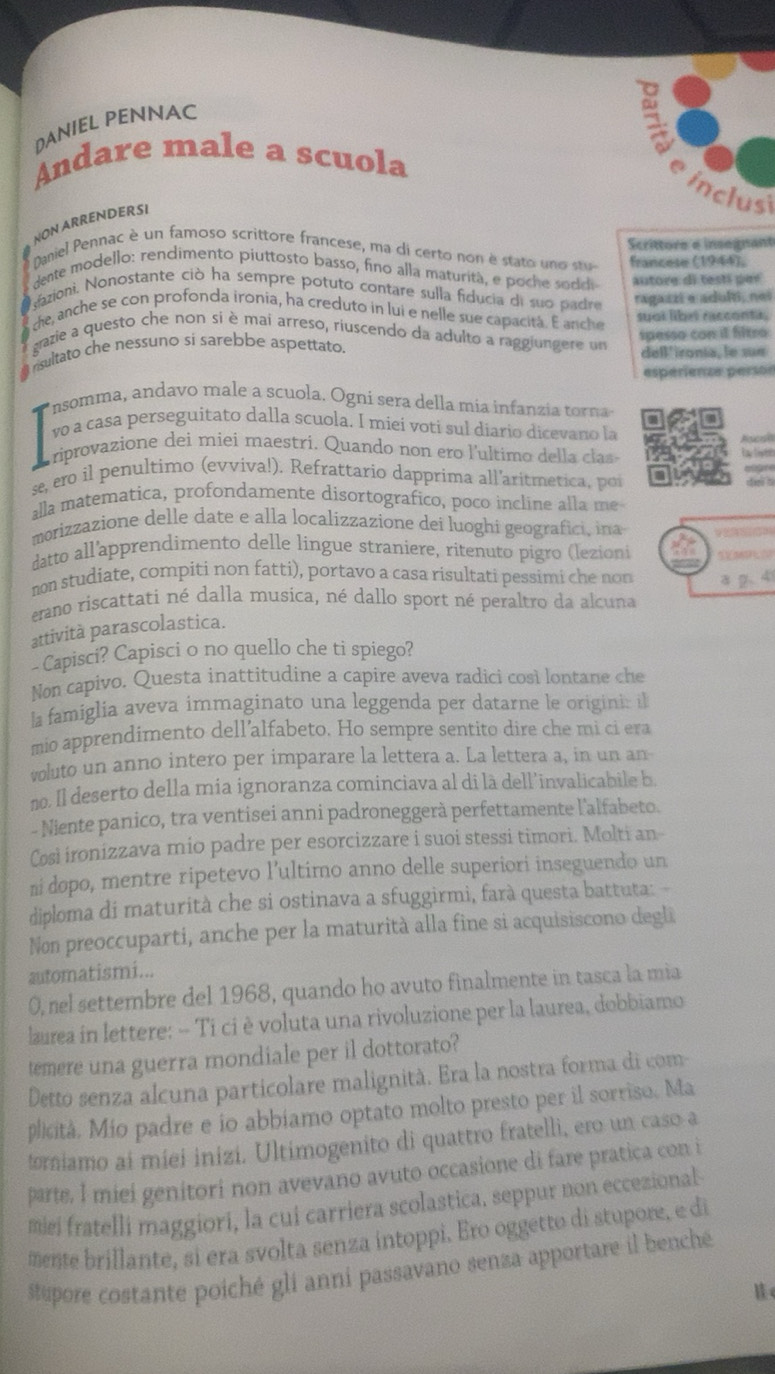 Risolto:DANIEL PENNAC Andare male a scuola inclusi NON ARRENDERSI ...
