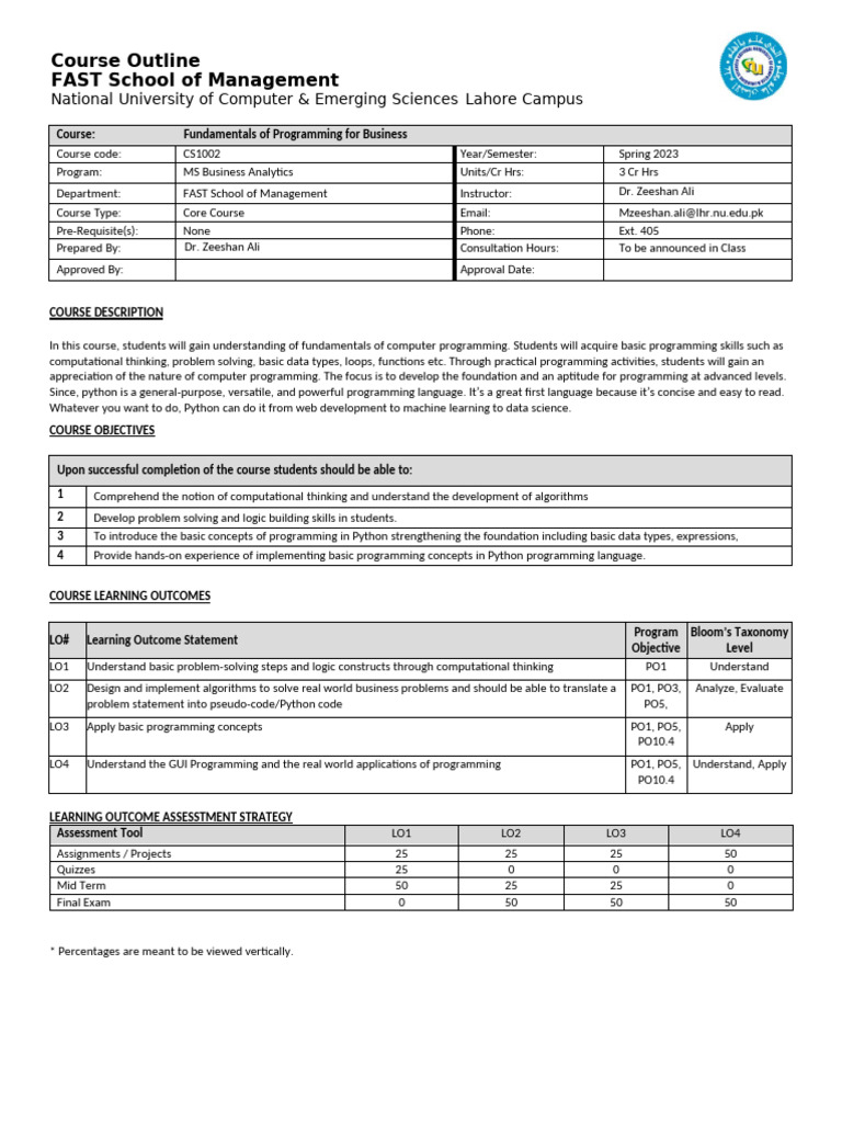 Programming Fundamentals Course Outline - Spring 2023 | PDF | Computer ...