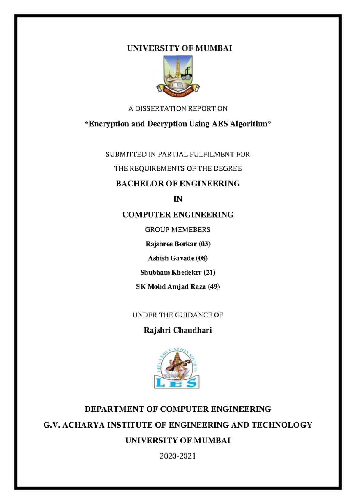AES Java Mini Project Report - UNIVERSITY OF MUMBAI A DISSERTATION ...