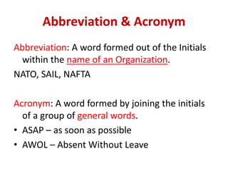 Abbreviation: Initialism and Acronym | PPTX