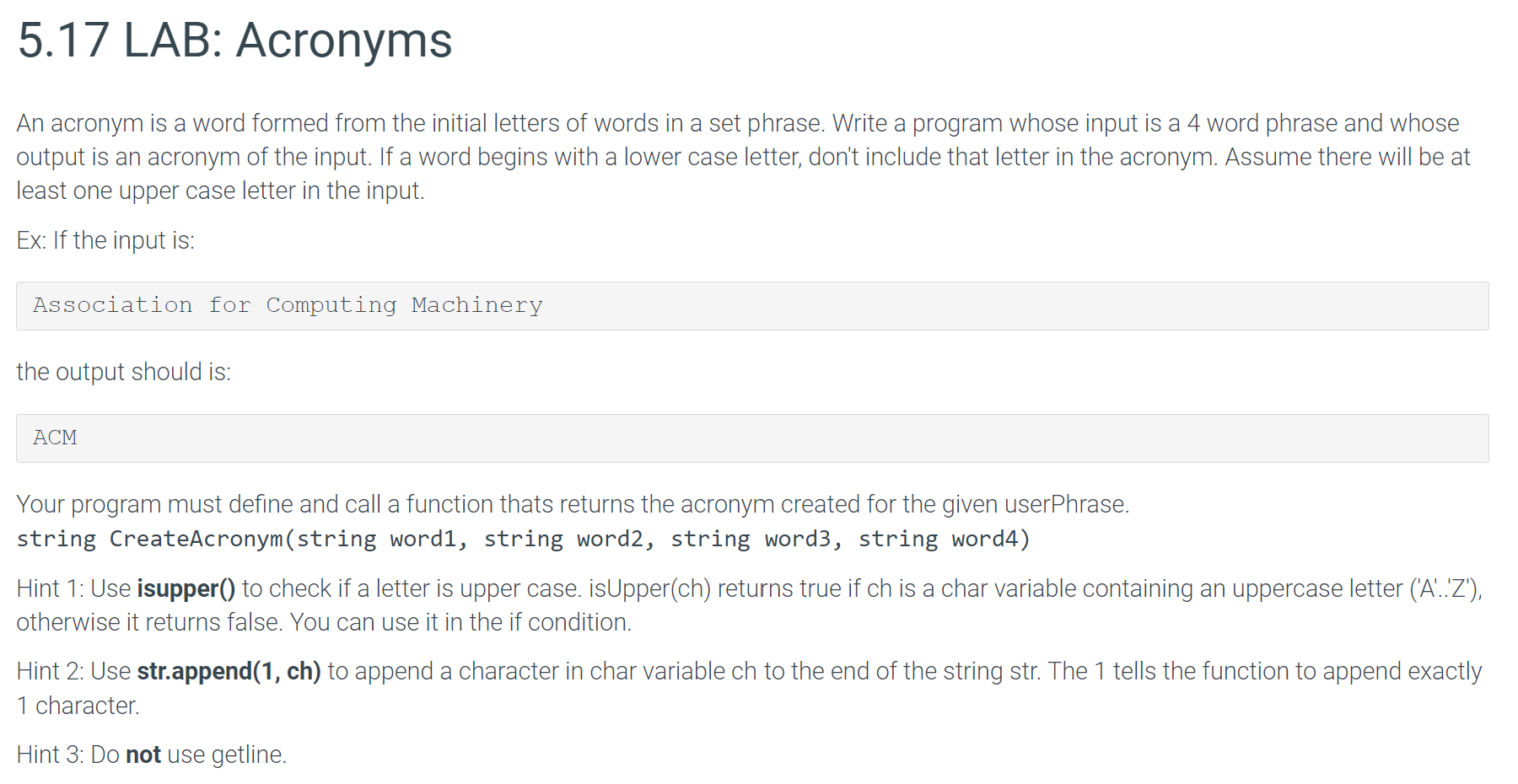 Solved 22.6 LAB: Acronyms An acronym is a word formed from | Chegg.com