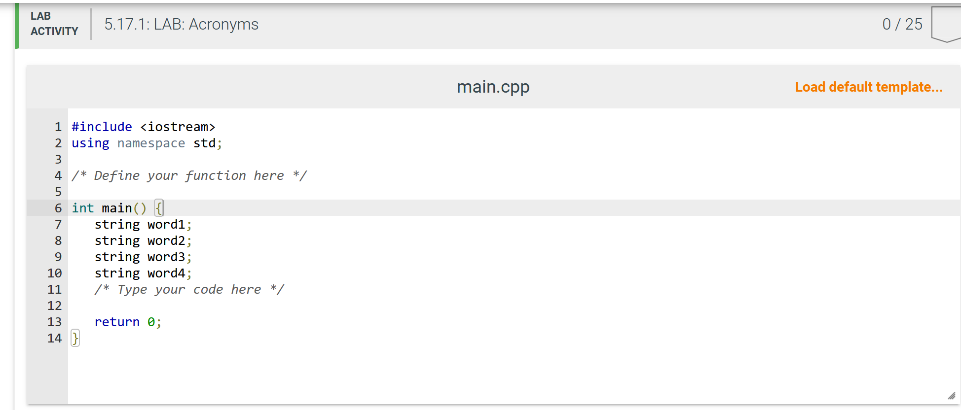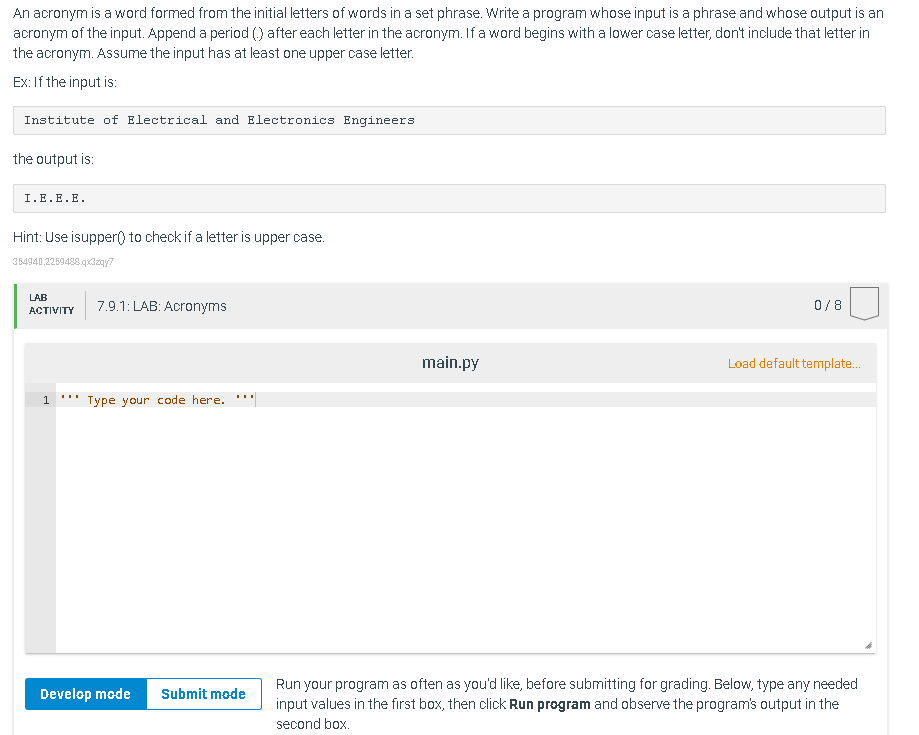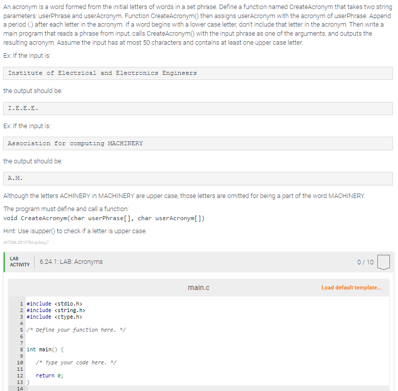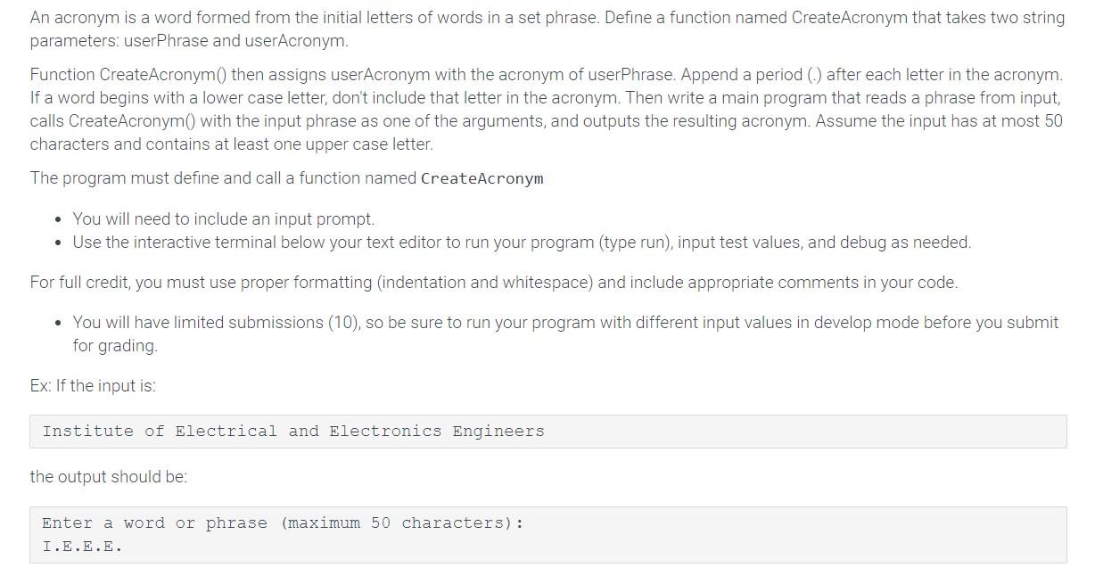 Solved 8.12 LAB: Acronyms Part 1: Please complete the | Chegg.com