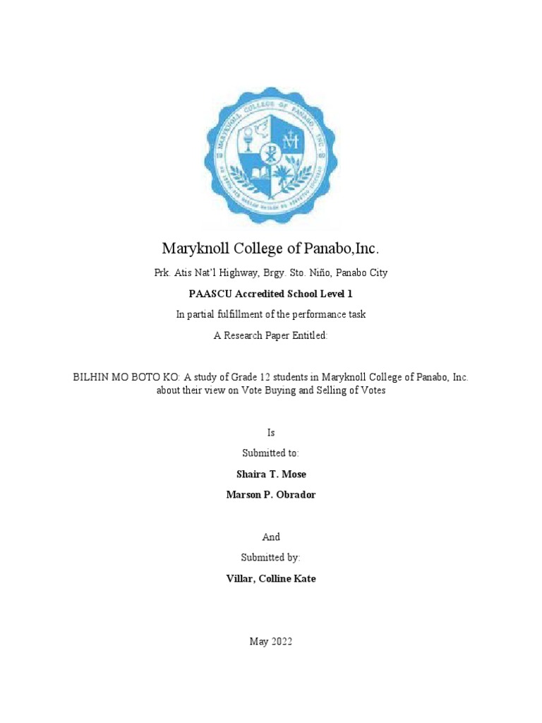 VILLAR MINI RESEARCH (CHAPTER1-3) | PDF