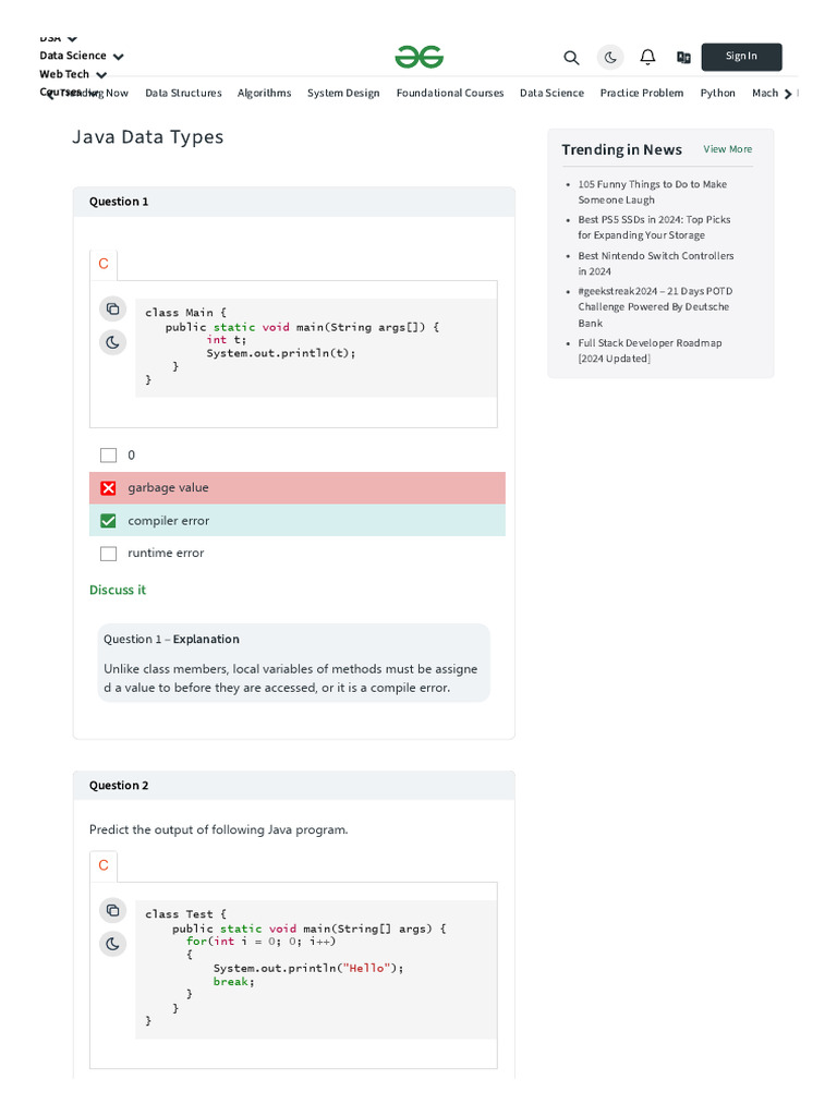 Java Data Types | GeeksforGeeks
