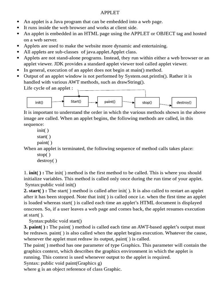 Java Applet .pdf - Java Programming - Notes - Teachmint