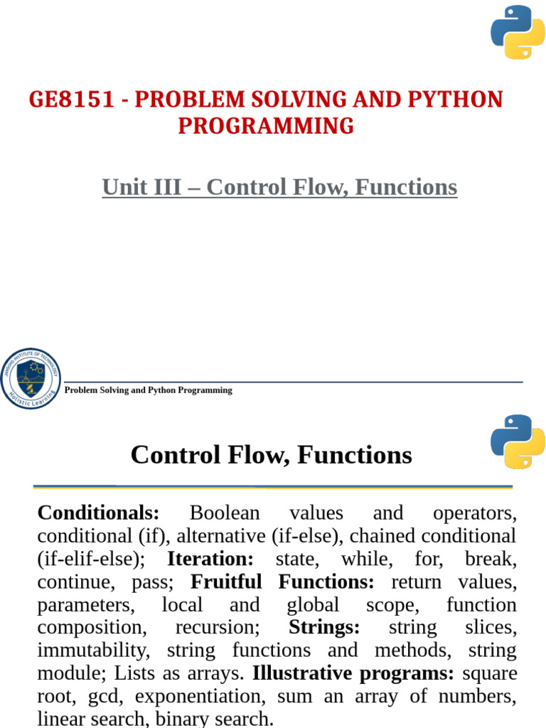 Python Unit II Unit 3 COntrol Flow FINAL | PDF | Control Flow | Boolean ...