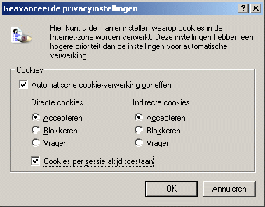 Browser accepteert geen cookies