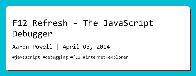 Based on this image's title: “F12 Refresh - The JavaScript Debugger”