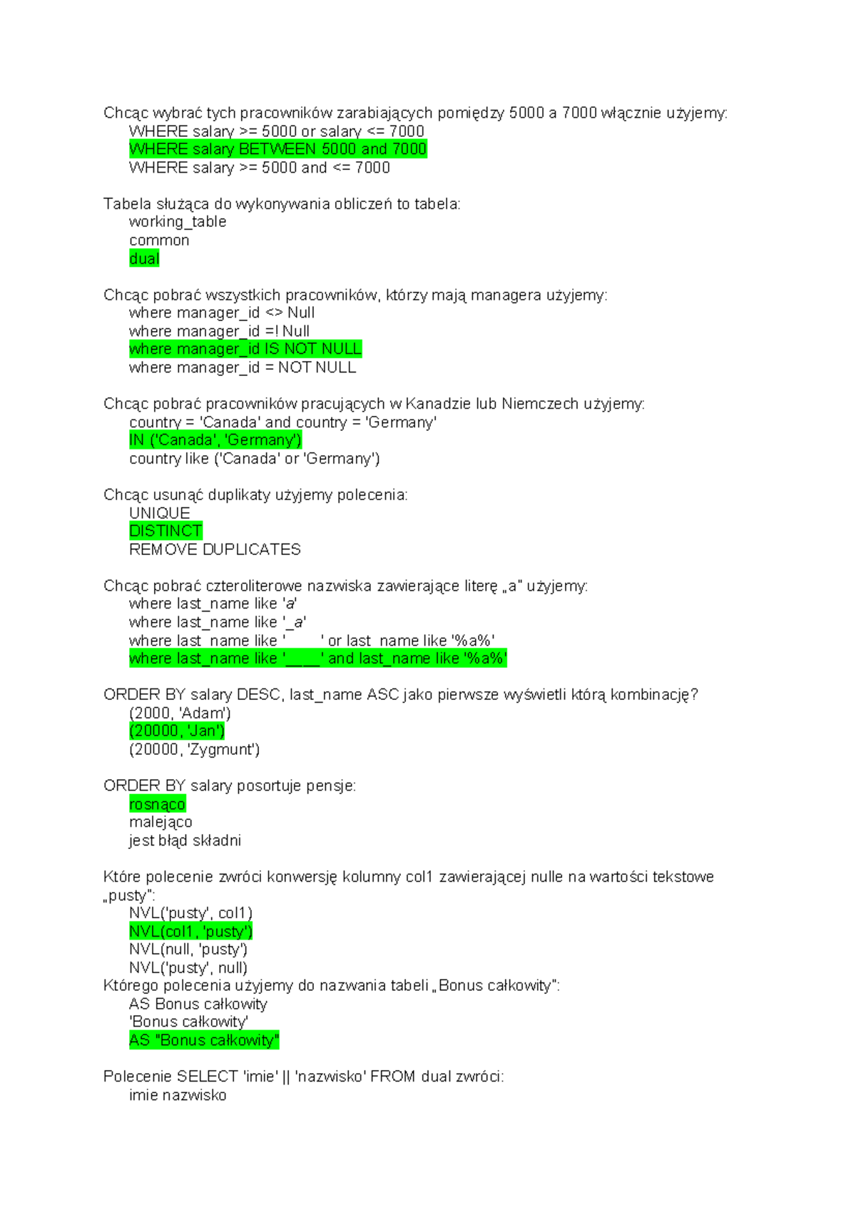 Egzamin z budowy i eksploatacji baz danych - 04.02.2021 - Studocu