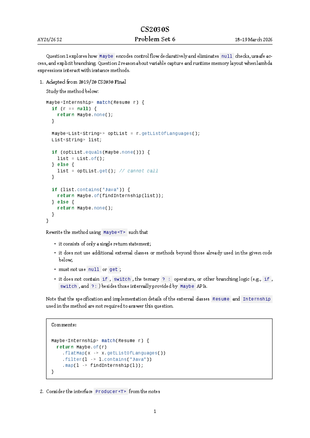 CS2030S S2 Problem Set 6 Solutions and Comments - Studocu