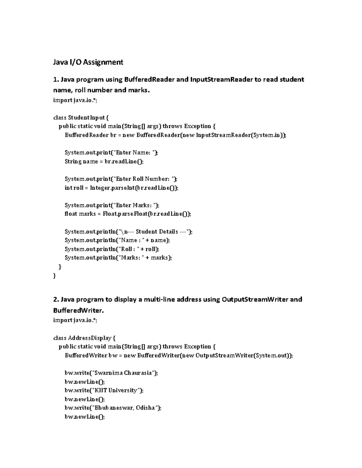Java IO Assignment 1: BufferedReader, File Handling & Output - Studocu