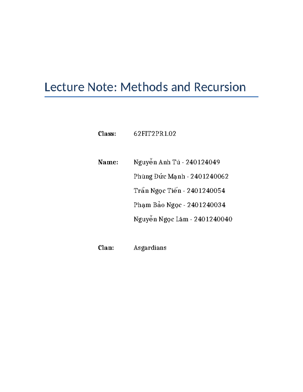 Lecture Note: Methods & Recursion in Java - 62FIT2PR1.02 - Studocu