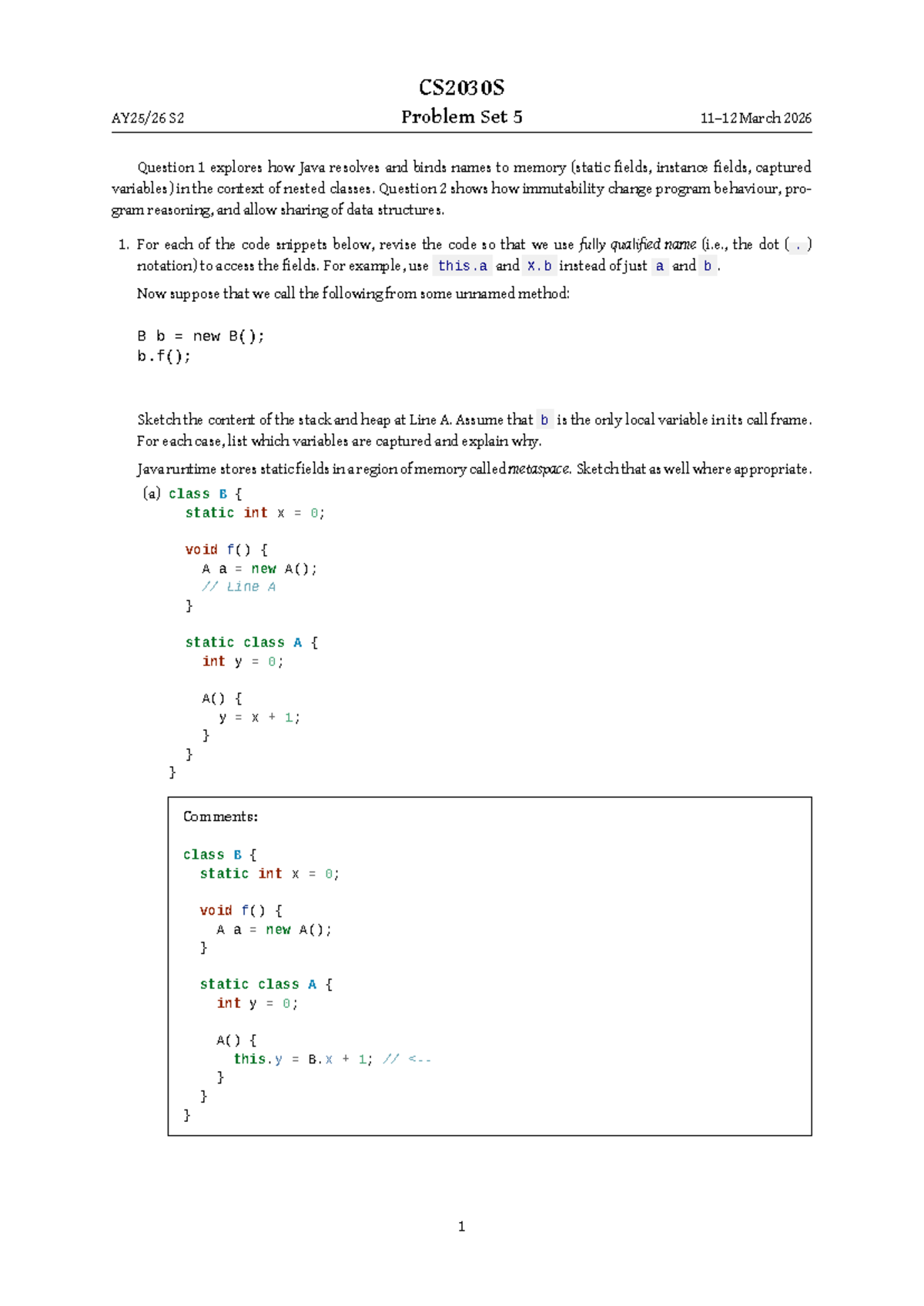 CS2030S Problem Set 5 Solutions: Java Name Binding & Immutability - Studocu