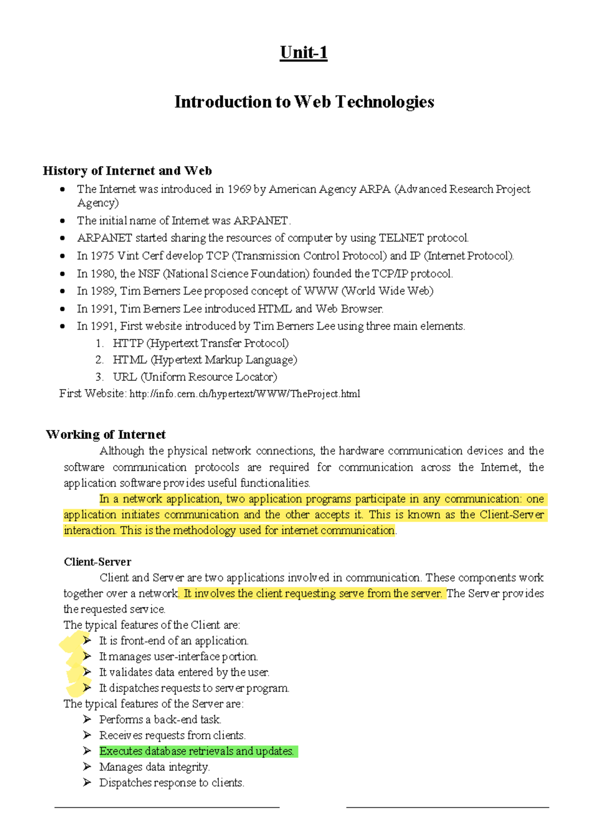 Web Technology unit 1 short notes - 1. Introduction to Web Technology ...