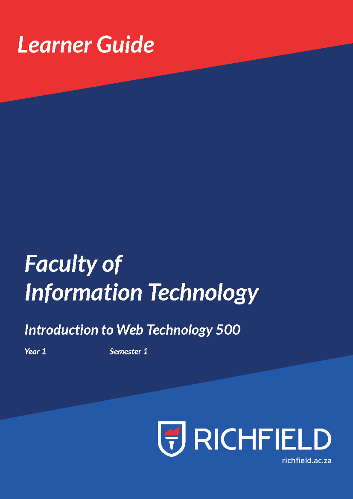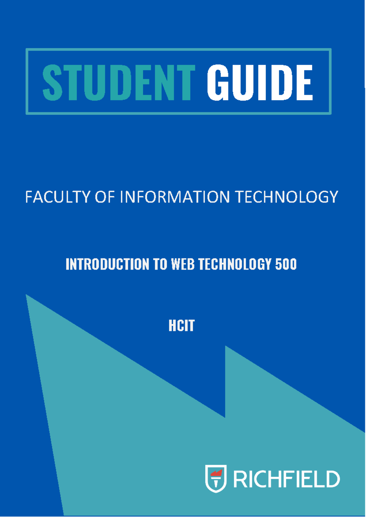 Introduction to Web Technology 500 Study Guide for HCIT Students - Studocu
