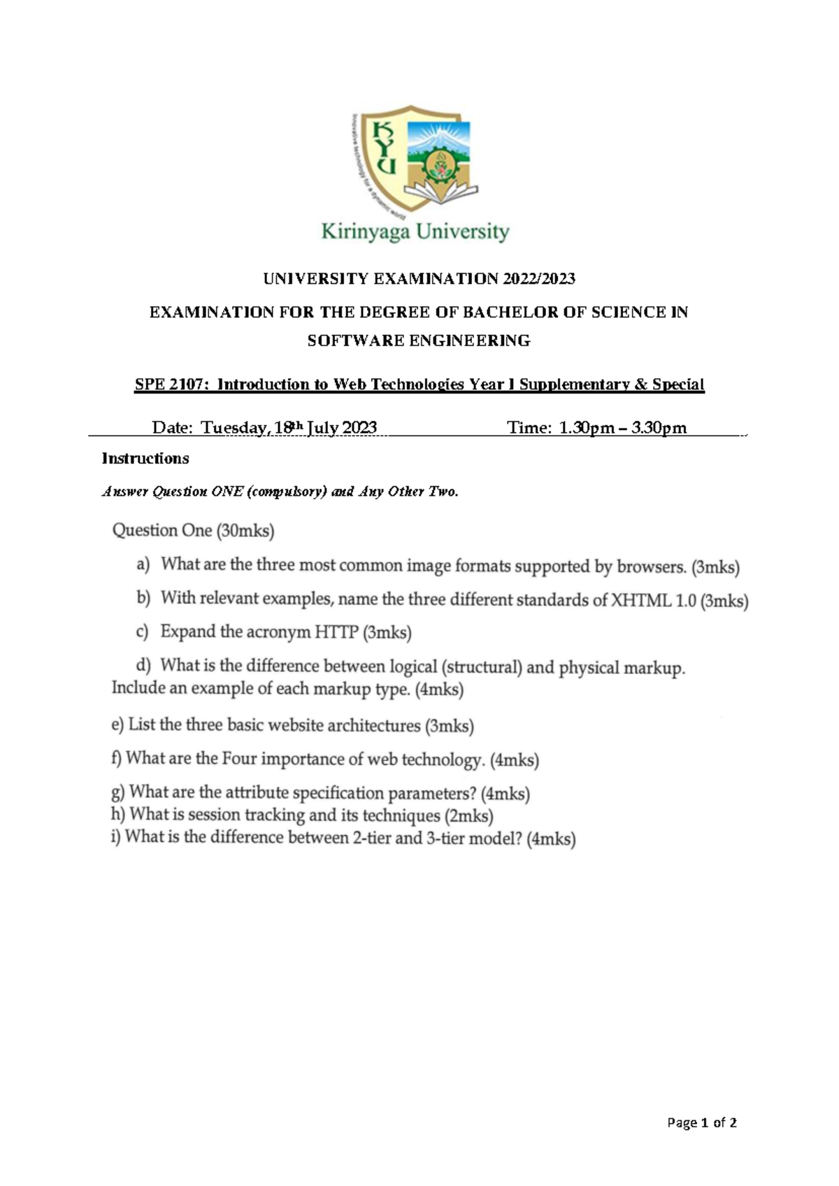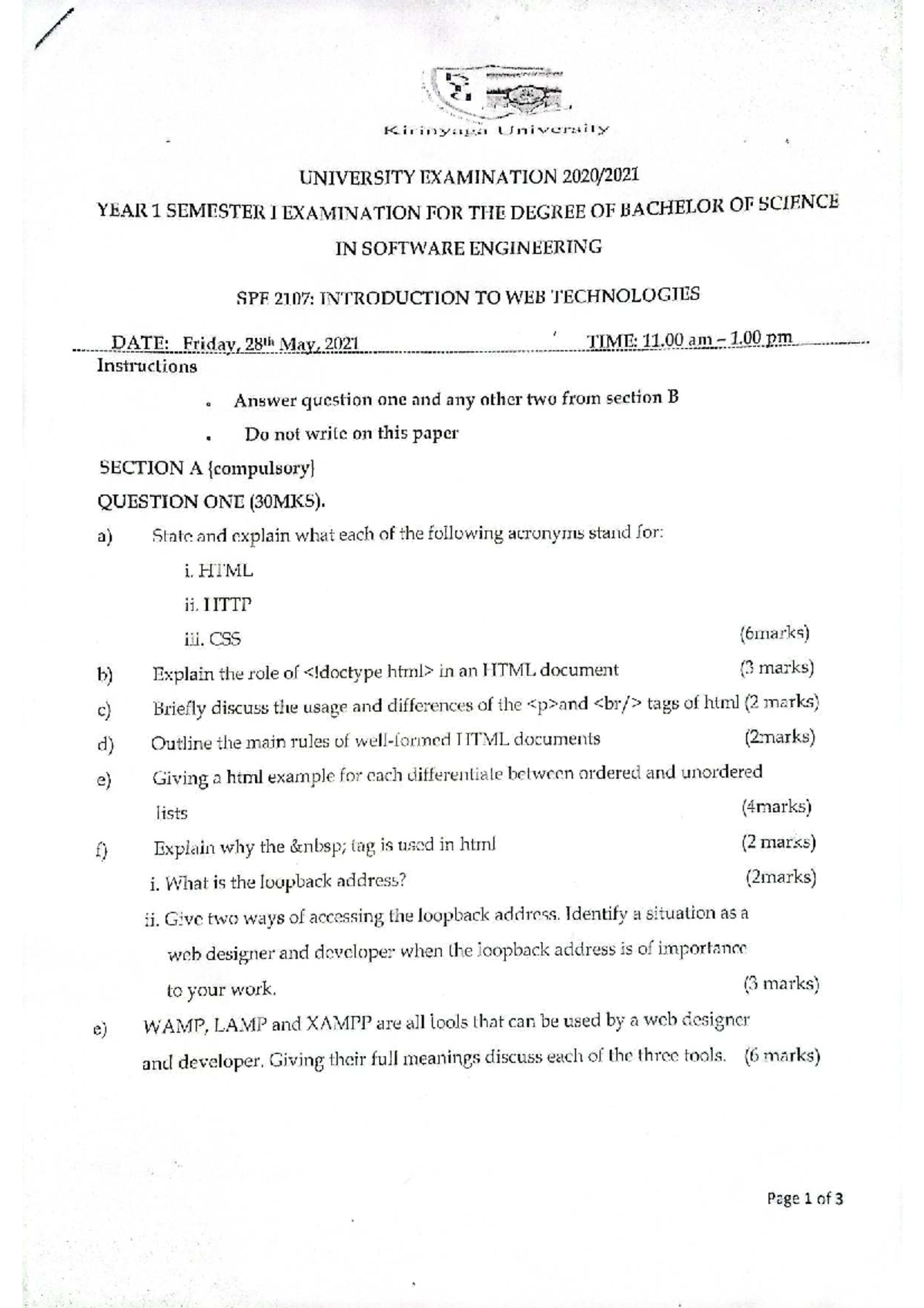 SPE 2107: Introduction to Web Technologies - Year 1 Exam Notes - Studocu