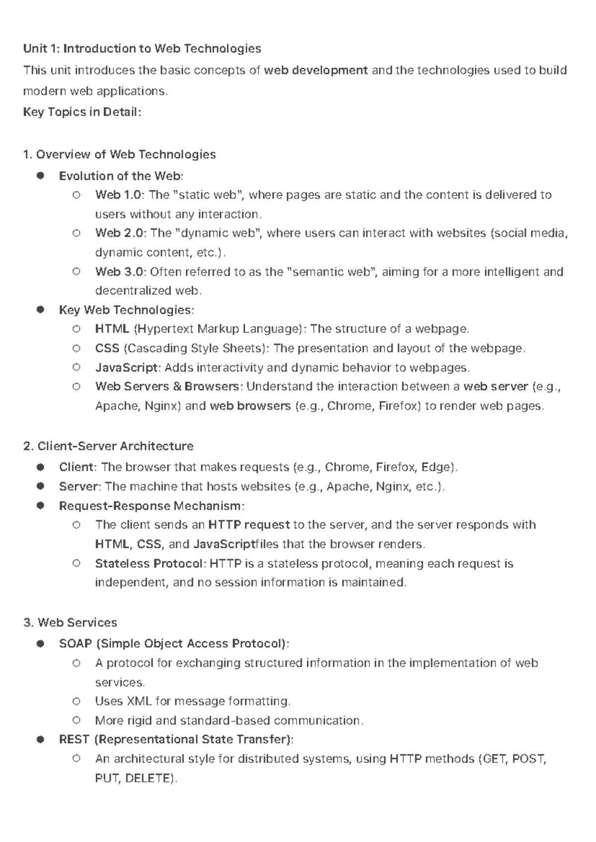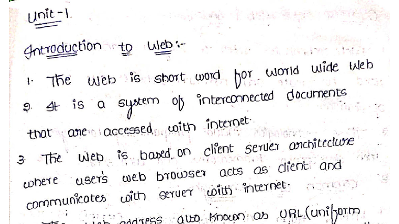 Unit 1 Lecture Notes: Introduction to Web Technologies - Studocu