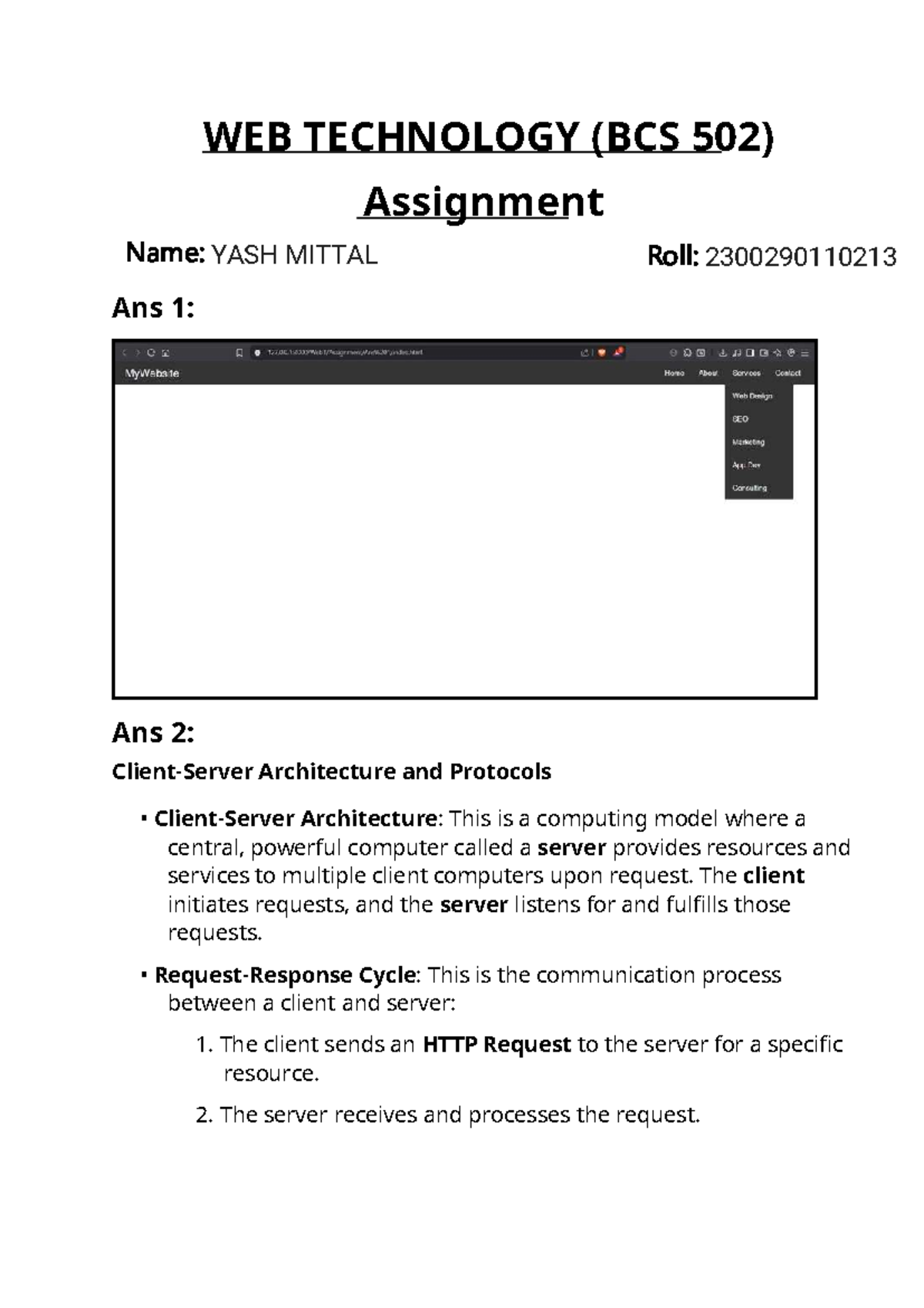 WEB TECHNOLOGY (BCS 502) Assignment on Architecture & Protocols - Studocu