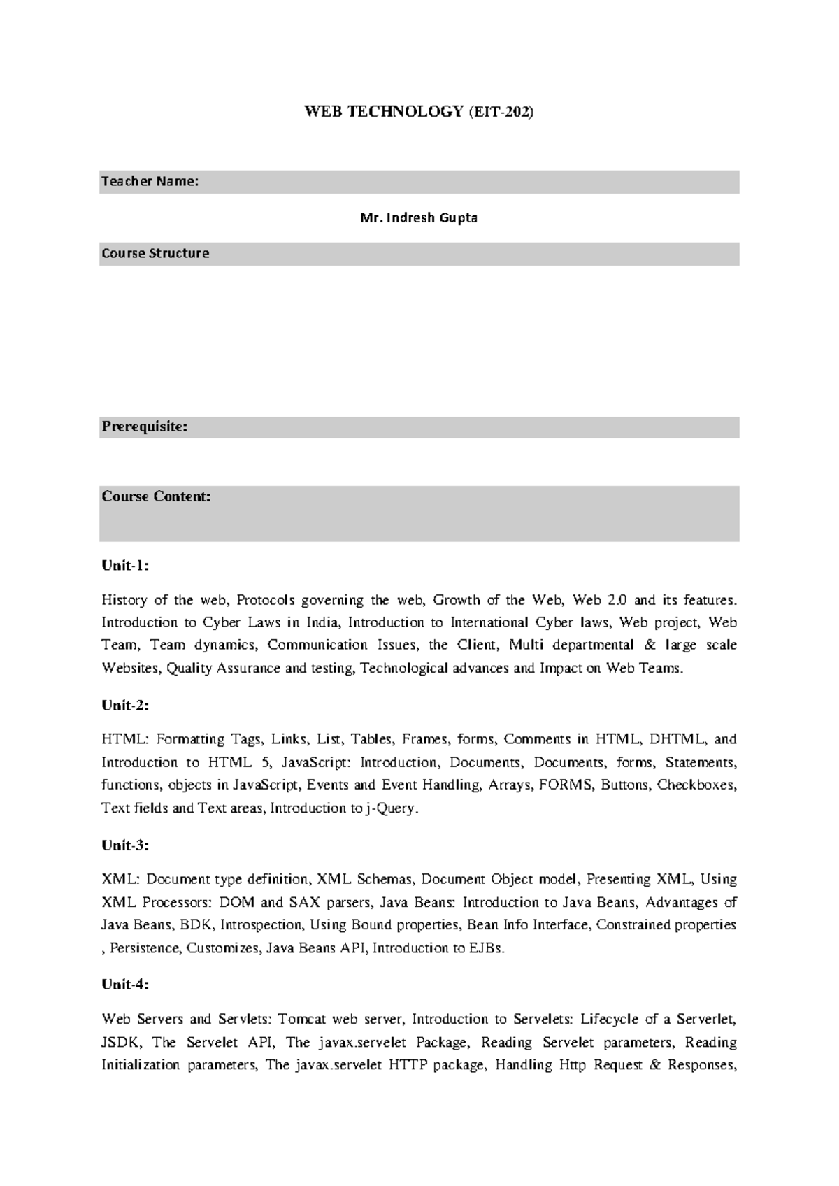 EIT-202-WT - Comprehensive Overview of Web Technology Concepts - Studocu