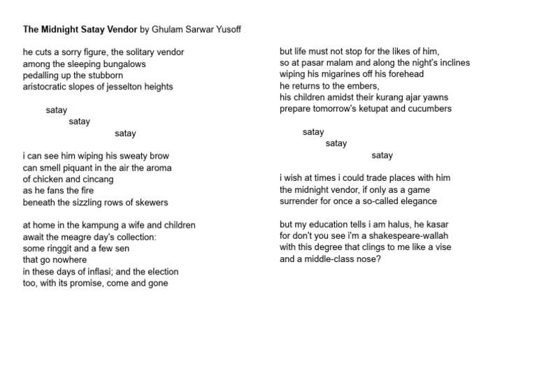 The Midnight Satay Vendor Poem | PDF