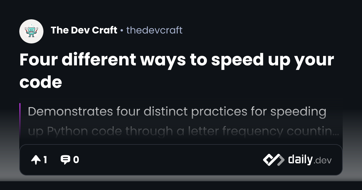 Four different ways to speed up your code | daily.dev