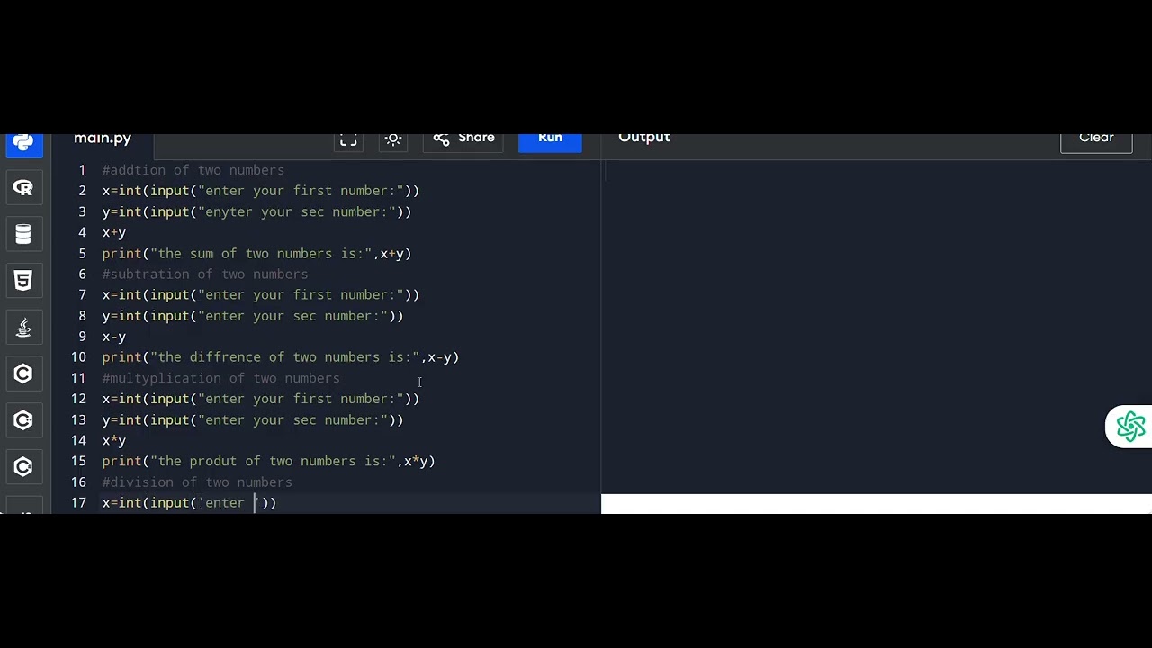 Program to perform Arithmetic operations on Two Numbers Using Python ...