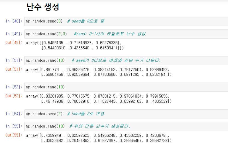 Python 강의 7. 넘파이 numpy 파이썬 라이브러리 패키지 총정리 배열 난수 생성 shuffle choice rand ...