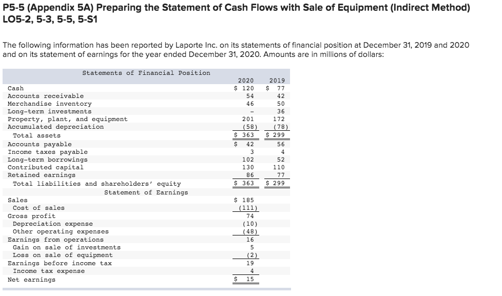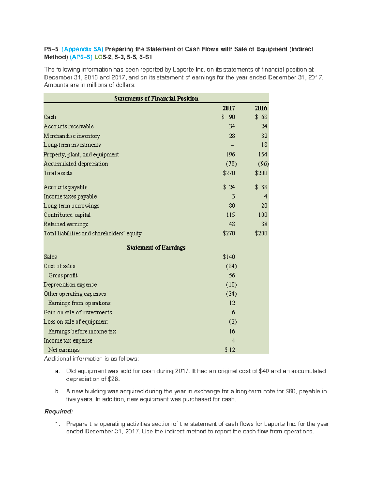Solved P5-5 (Appendix 5A) Preparing the Statement of Cash | Chegg.com