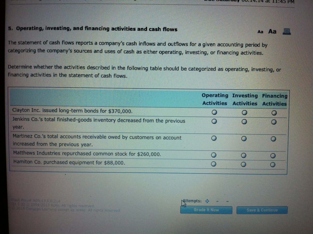 Solved Section 5: Statement of Cash Flows 5a: Investing and | Chegg.com