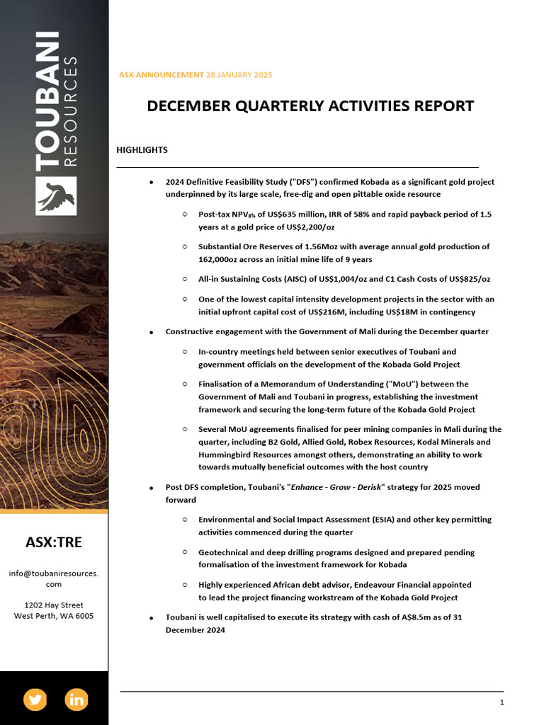 Kobada Gold Project Q4 2024 Report | PDF | Loans | Cash Flow Statement