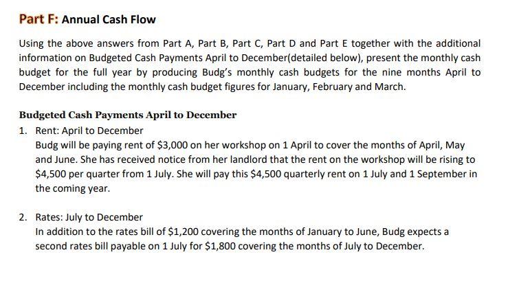 Part F: Annual Cash Flow Using the above answers from | Chegg.com