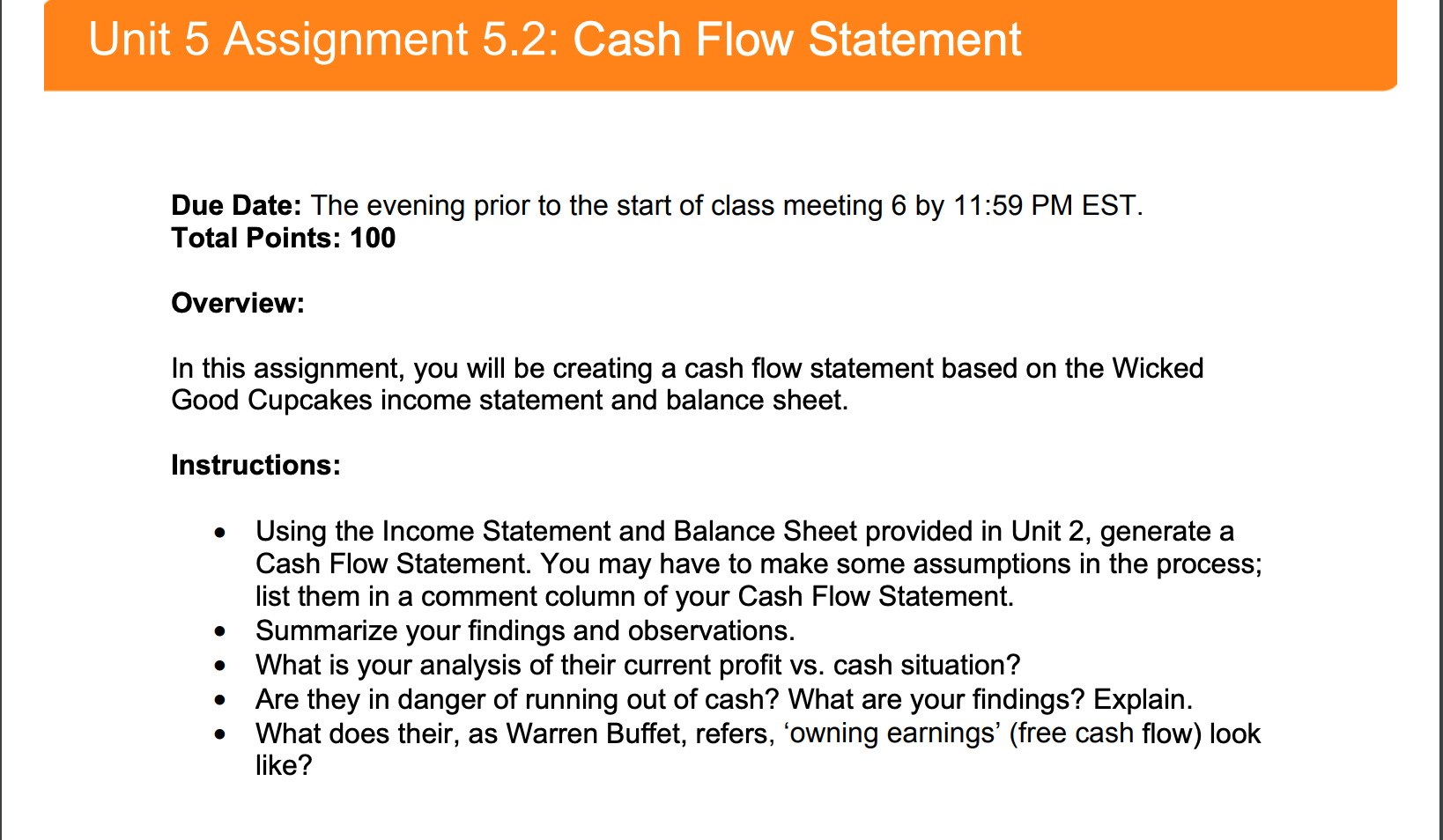 Solved Unit 5 Assignment 5.2: Cash Flow Statement Due Date: | Chegg.com