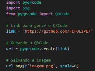 Based on this image's title: “GitHub - FEFOLIPE/GerarQRCodePython: Gerando QRCode com Python”