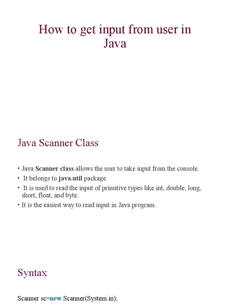 JAVA USER Input( Scanner) Syntax IN JAVA Programming - Java User Input ...