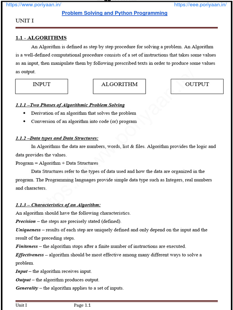 Unit I PROBLEM SOLVING AND PYTHON PROGRAMMING | PDF | Algorithms ...