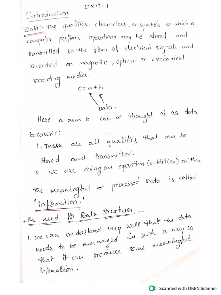 DATA STRUCTURES AKTU UNIT-1 IMPORTANT QUESTIONS - DS UNIT- 1-Define the ...