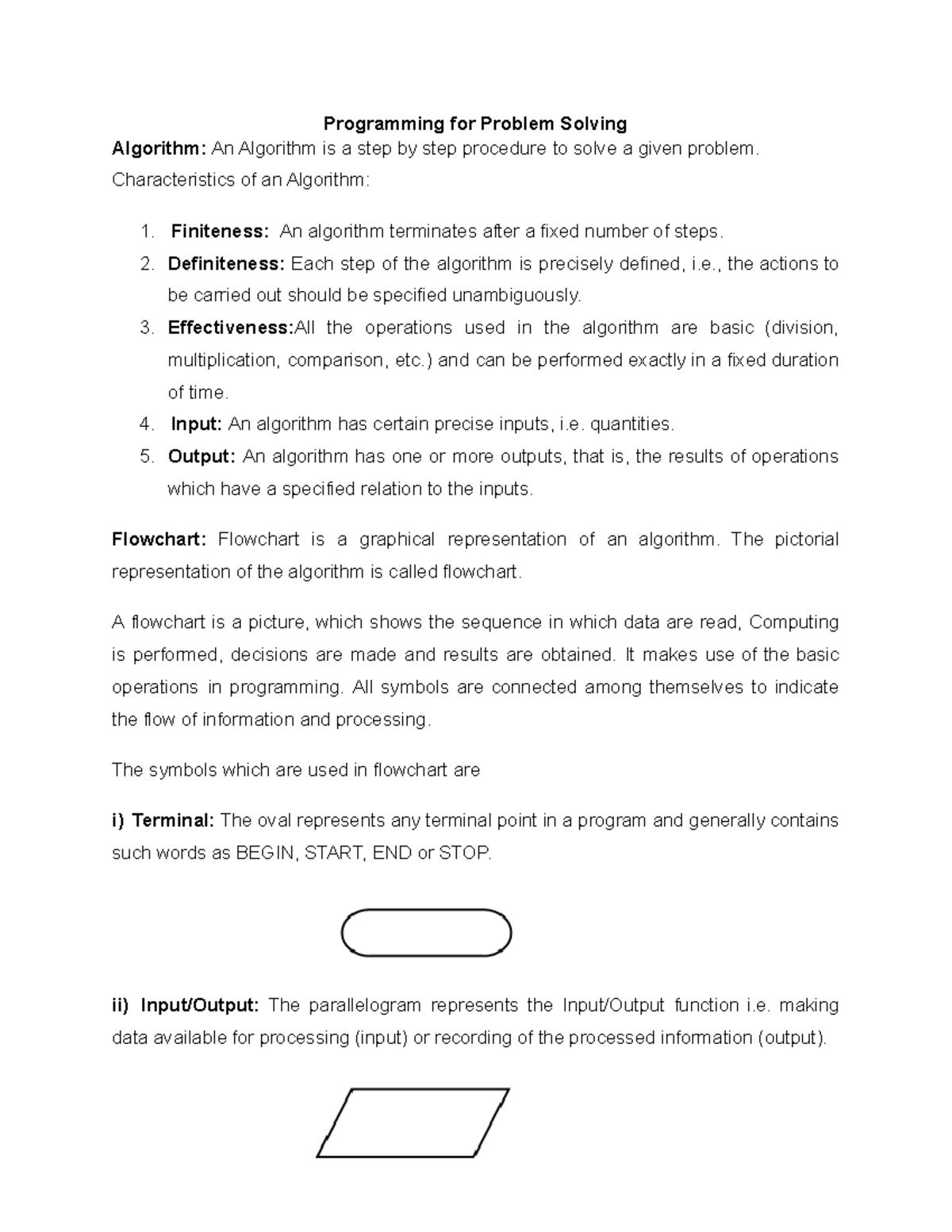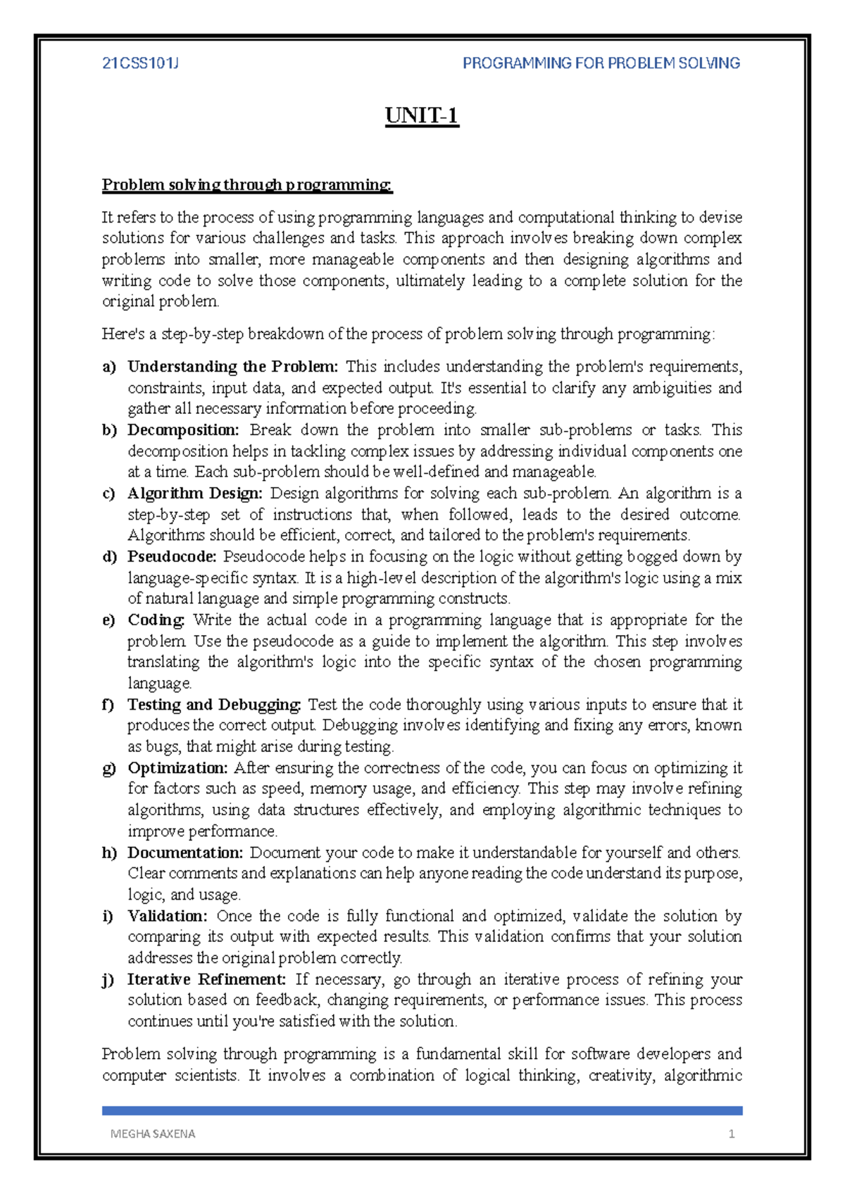 PST- UNIT -1 Sample - PROBLEM SOLVING TECHNIQUE NOTE - Programming for ...