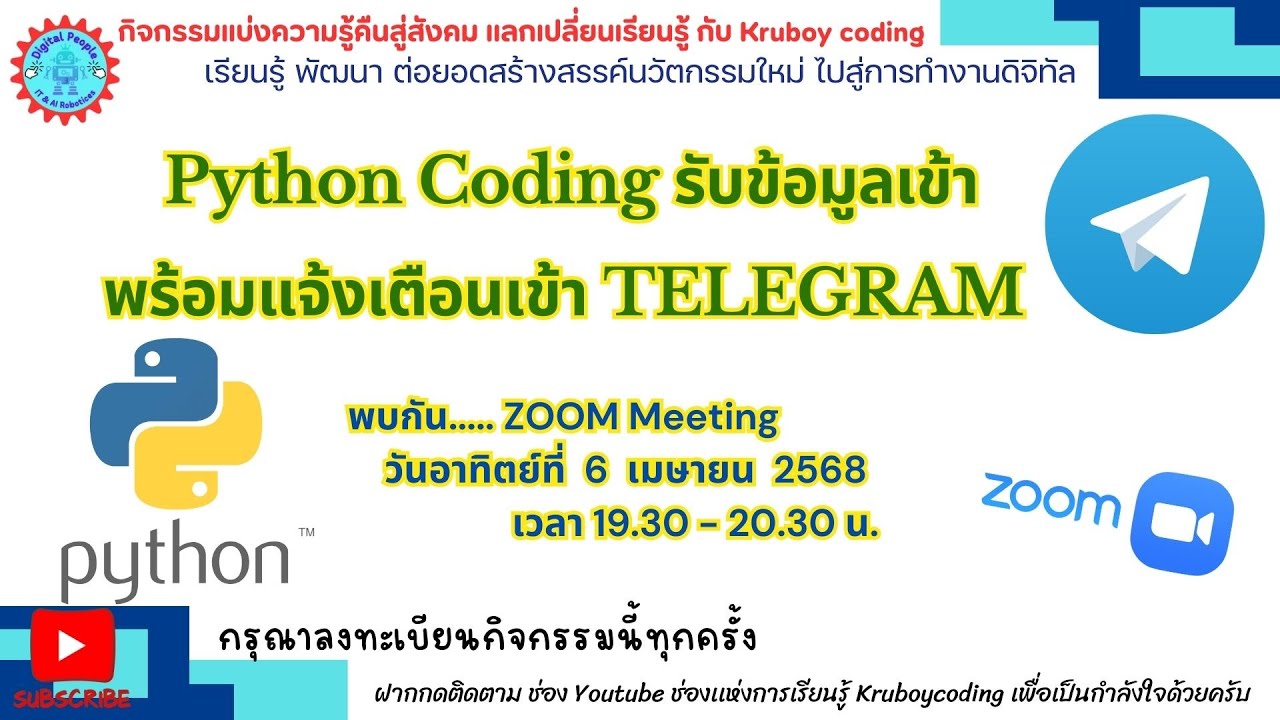 Python Coding รับข้อมูลเข้าพร้อมแจ้งเตือนเข้า TELEGRAM - YouTube