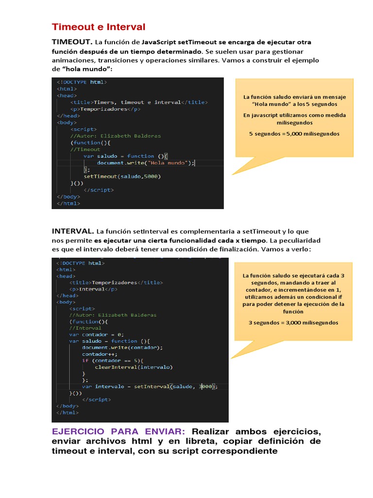 Uso de setTimeout y setInterval en JS | PDF