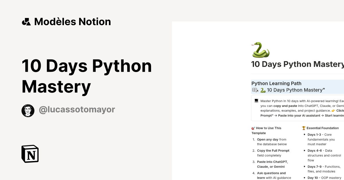 10 Days Python Mastery | Modèle créé par Lucas Sotomayor | Marketplace ...