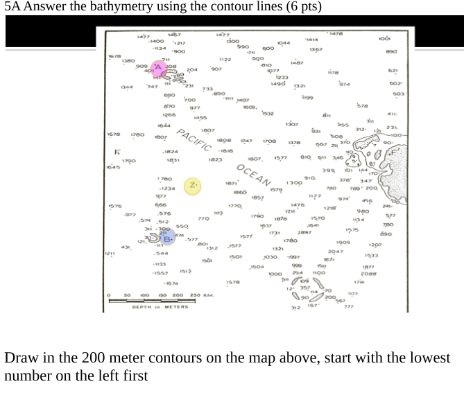 5A Answer the bathymetry using the contour lines (6 | Chegg.com