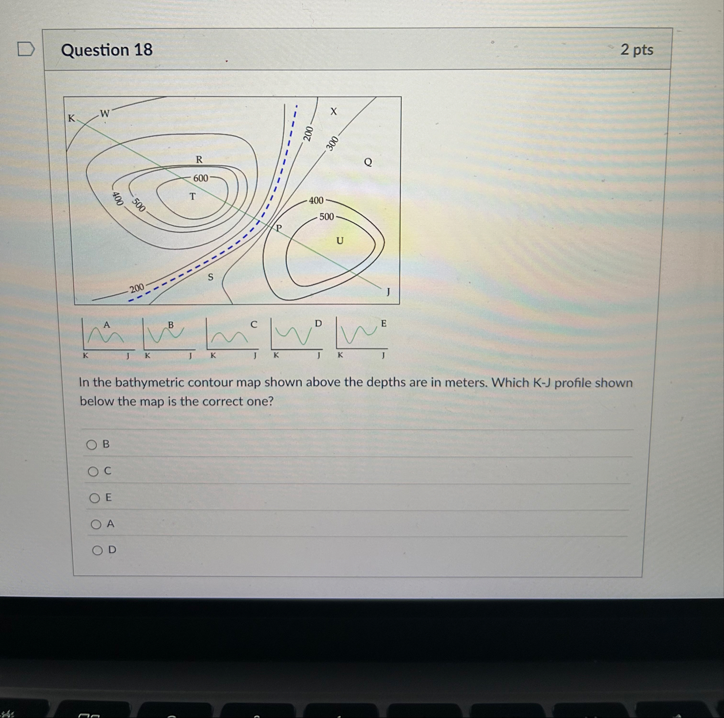Solved Question 182 ptsIn the bathymetric contour map shown | Chegg.com